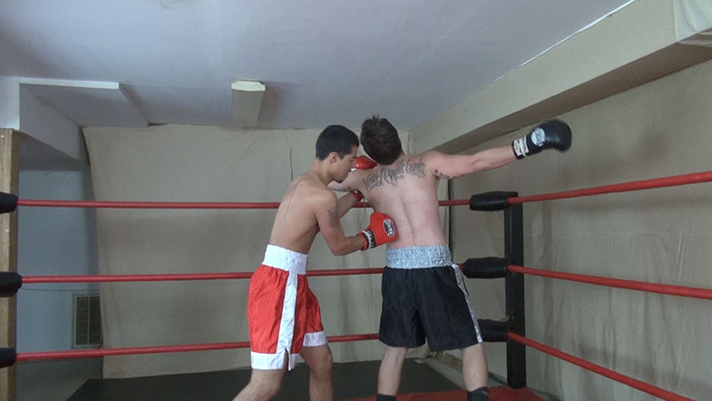 Lorenzo delivers a shot to Meadlock's kidney.